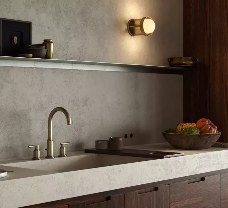 Anodisée pour obtenir sa couleur distinctive, l’applique murale Loop est associée à l’ampoule LED Sphere III de Tala. Les caractéristiques Dim to Warm et la forme lunaire de la source lumineuse accentuent le pouvoir éthéré de Loop.
