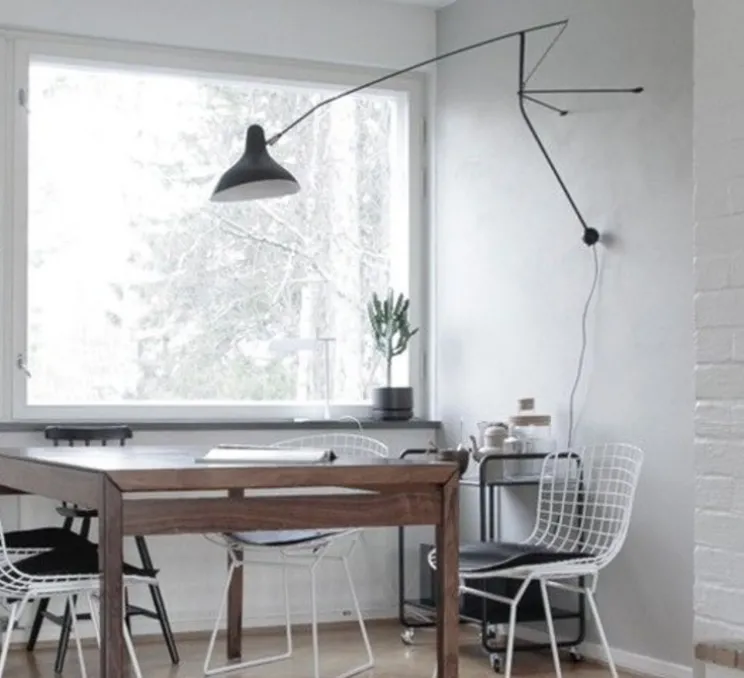 D’une rare élégance, Mantis BS2 est à la fois discrète et très présente. Elle occupe l’espace sans s’imposer. Elle se compose d’acier et d’aluminium, et son bras rotatif à 180° et inclinable à la verticale permet d’orienter la lumière avec précision sur la zone souhaitée. L’abat-jour est aussi orientable.