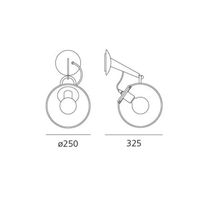 La sphère en verre a un diamètre de 25cm. La profondeur de l’applique est de 32,5cm. L’ampoule n’est pas fournie. Nous recommandons une source LED E27, 12W. Dimmable en fonction de l’ampoule utilisée.