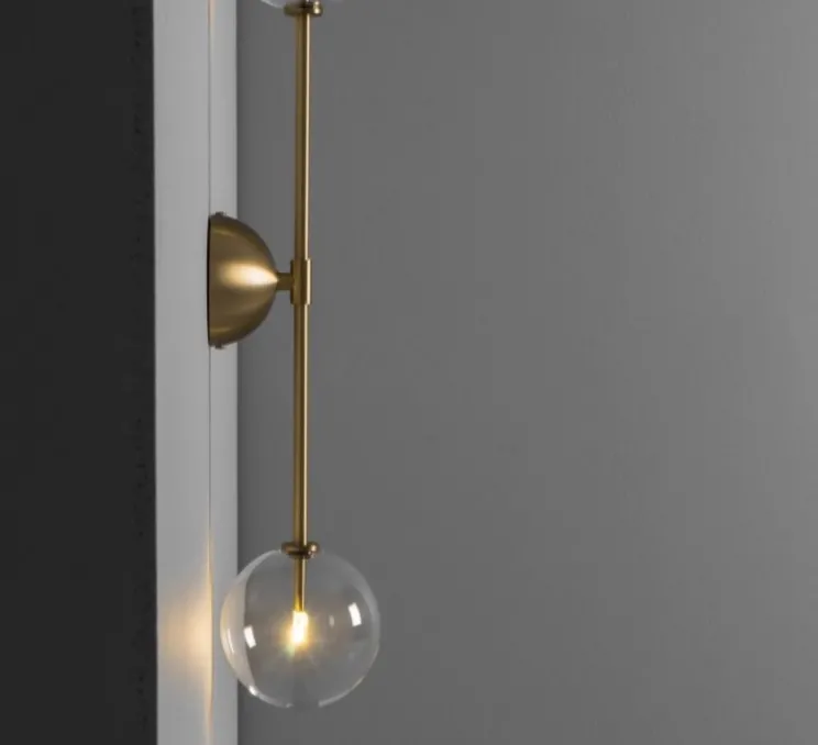 Conçue en laiton avec des globes en verre soufflé à la bouche, son style rétro introduit une touche poétique dans votre intérieur.