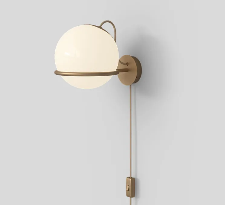 En effet, le fondateur d’Astep, Alessandro Sarfatti, a voulu rendre hommage à son grand-père en rééditant ces œuvres. Avec son verre oplalin sphérique avec une structure couleur champagne, cette applique fait partie de la collection iconique de Gino Sarfatti. Ce luminaire a été conçu initialement en 1959 et a été réédité en 2018 !