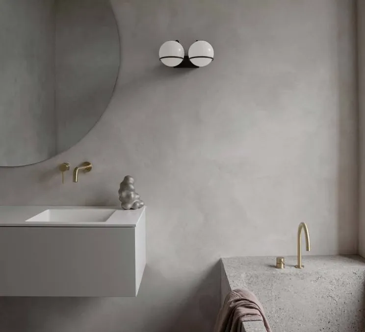 Avec ses deux verres oplalins sphérique avec une structure noire, cette applique fait partie de la collection iconique de Gino Sarfatti. Ce luminaire a été conçu initialement en 1959 et a été réédité en 2018 !