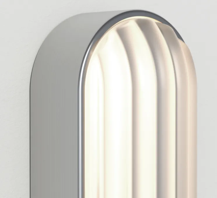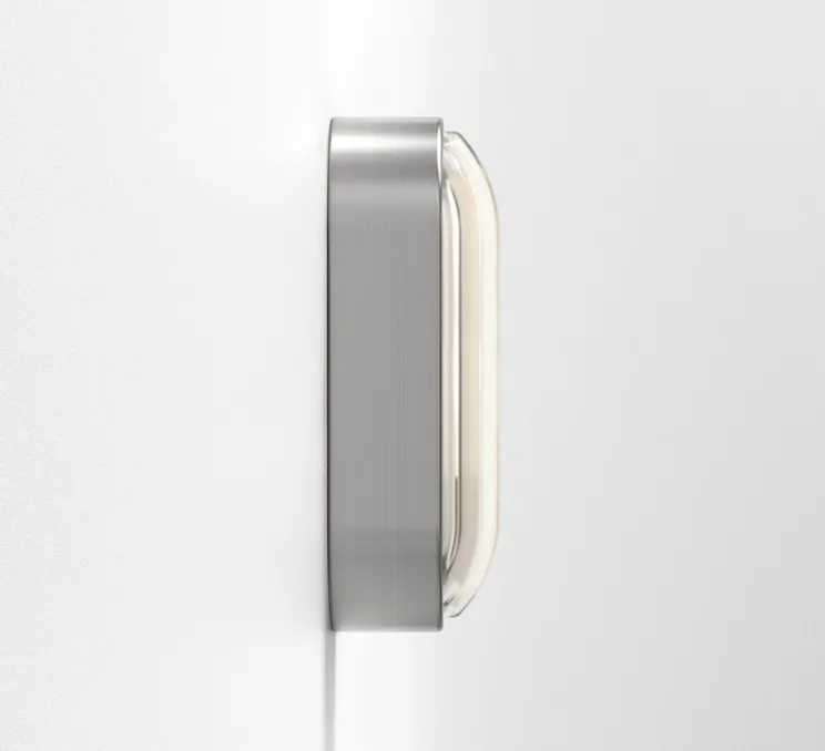Découvrez l’applique murale d’extérieur Montréal Oval, finition acier inoxydable brossé, imaginée par le studio de la maison britannique Astro.