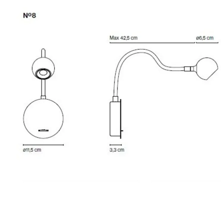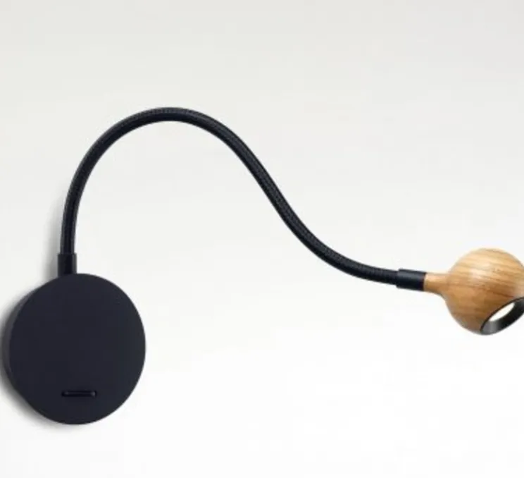 Applique murale, N°8, noir et chêne, Led, 2700k, 150lm,ø11,5 cm – Marset