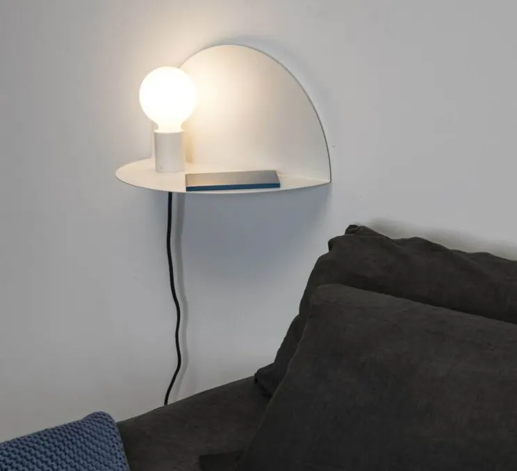 Sa structure en acier est composée d’un cercle plié. Un des côtés permet de la fixer au mur, tandis que le deuxième permet de transformer l’applique Nit en une étagère ou table de nuit. L’ampoule lui apporte une touche chaleureuse qui est très appréciée pour les chambres à coucher. Le faisceau lumineux est situé à gauche de la structure.