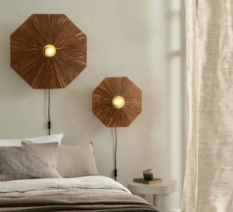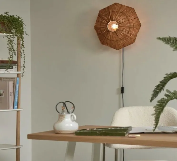 La Panama apporte une touche contemporaine à votre intérieur. Son tissage aéré en raphia permet à la lumière de se diffuser en formant des motifs captivants qui créent un jeu d’ombres et de chaleur. Ce modèle s’intègre parfaitement dans un salon ou une chambre, apportant une ambiance chaleureuse et accueillante. Que vous souhaitiez faire une déclaration audacieuse ou compléter subtilement votre décor, l’applique Panama assure une esthétique stylée et responsable.