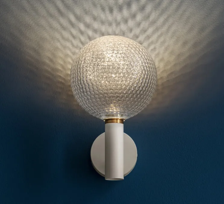 L’applique PAR 18 se distingue par son globe en verre soufflé blanc à la texture irrégulière, rappelant une balle de golf. Cette texture unique, créée par des maîtres verriers bohémiens, diffuse une lumière douce et subtile qui joue avec les ombres pour créer des effets visuels captivants. Parfaite pour un salon, une entrée ou un couloir, elle ajoute une touche moderne et artistique à tout espace.