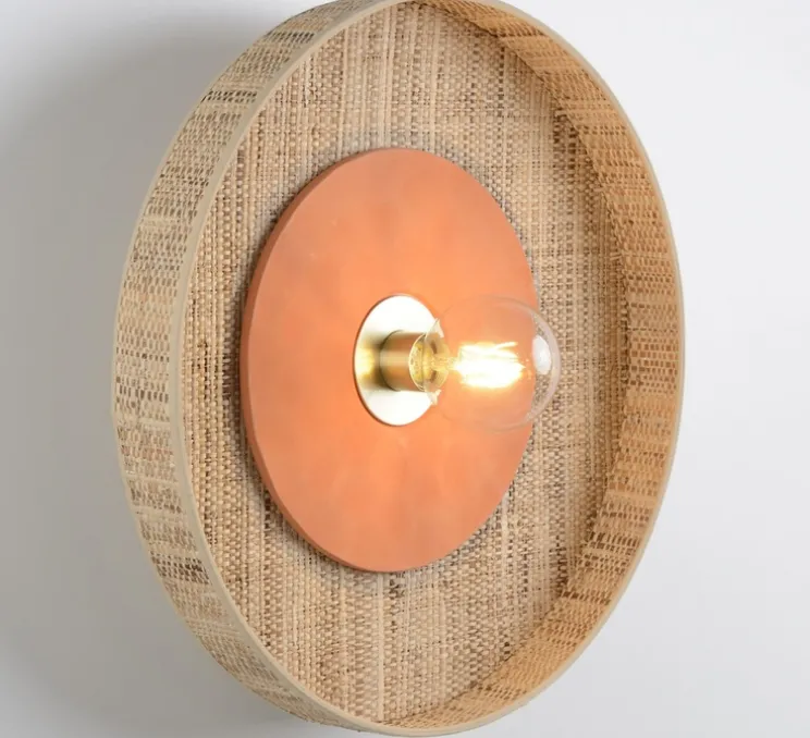 Cette applique de forme cylindrique en bana, équipé d’un disque en céramique, nous évoque l’authenticité d’une maison de vacances familiale, remplie de souvenirs et d’objets vintages artisanaux… l’applique trouve parfaitement sa place dans un salon, une chambre ou une entrée.