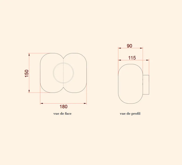 L’applique Poutou mesure 18 cm de large, 15 cm de hauteur et 11,5 cm de profondeur.