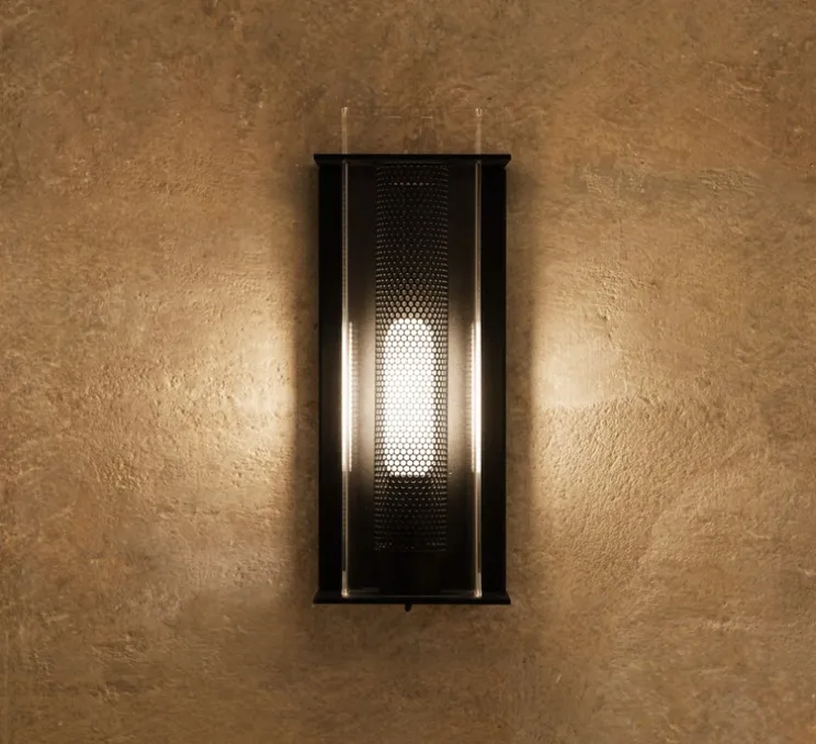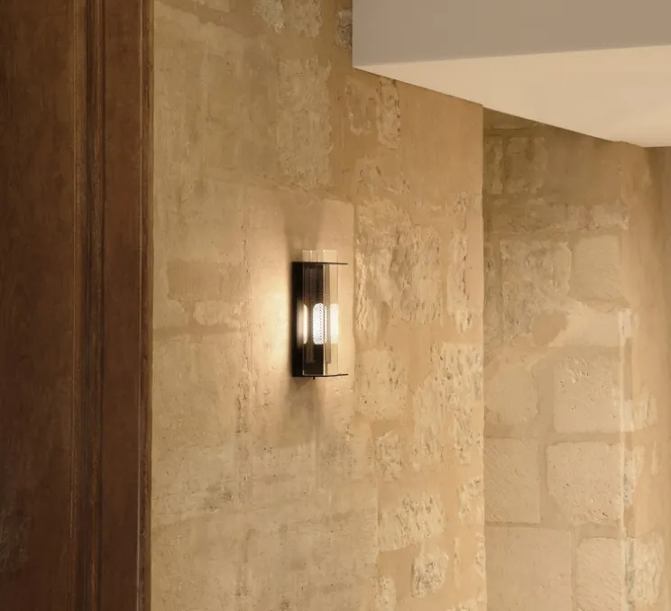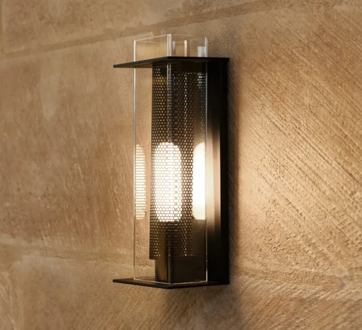 L’applique W1 se compose d’une structure en acier recouverte d’une enveloppe transparente fixée au mur par 2 étriers. Une grille microperforée vient recouvrir la source lumineuse pour limiter l’éblouissement tout en apportant un éclairage optimal et qualitatif.