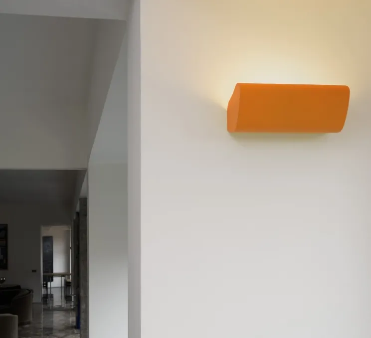Découvrez l’applique Radieuse, finition orange, une réédition du célèbre designer Charles Le Corbusier par la maison Nemo lighting.