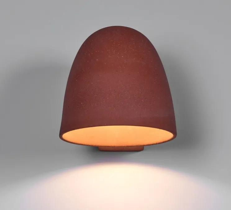 Inspirée par les formes élémentaires du cylindre et du disque, elle fait partie d’une collection de luminaires évoquant les joyaux de l’architecture moderniste. Son diffuseur en céramique texturée laisse subtilement filtrer la lumière, projetant un éclairage doux et enveloppant qui met en valeur la richesse du chamotte brut. Cette combinaison entre minimalisme et artisanat confère à l’applique un caractère à la fois brut et chaleureux.