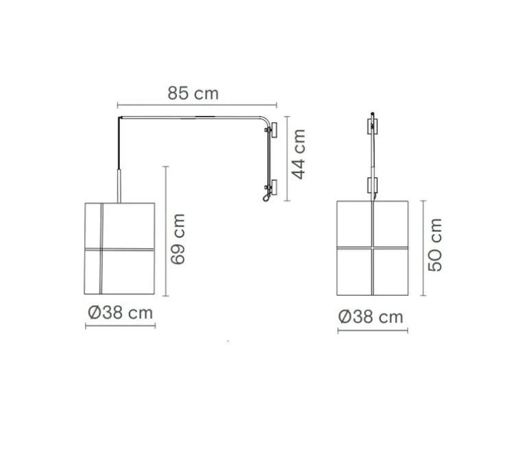 L’applique mesure 38 cm de longueur et 94cm de hauteur. Le bras de déportation mesure 85cm.
