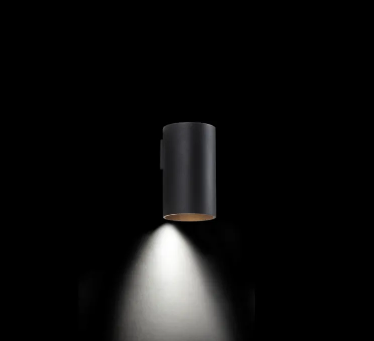 Les dimensions de l’applique murale sont de 11,5 cm de hauteur et 6,7 cm de diamètre. Disponible en différents coloris (noir, blanc, cuivre et aluminium brossé) et en différentes tailles avec ou sans le système LED.