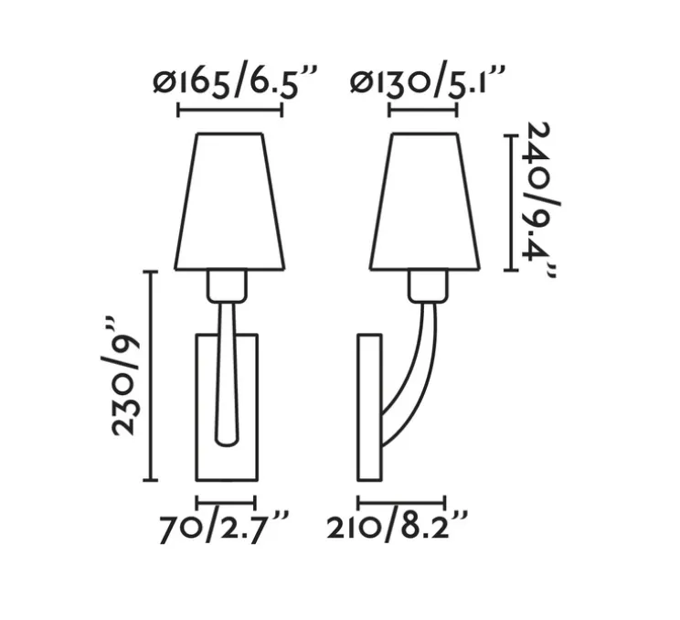 L’applique Rem mesure 16,5 cm de longueur, 21 cm de profondeur et 47 cm de hauteur. Montage mural. L’ampoule LED E27 d’une puissance maximale de 15W n’est pas fournie mais est recommandée pour le bon fonctionnement du luminaire.