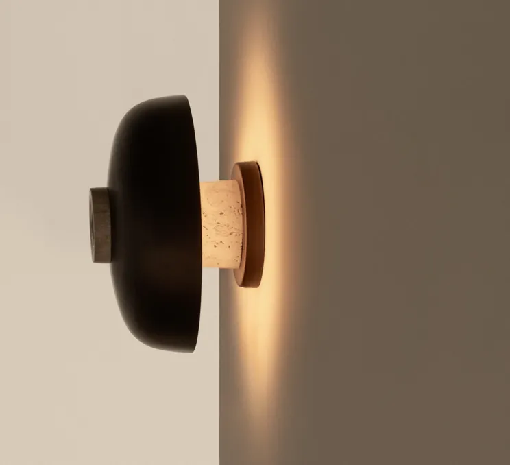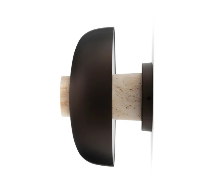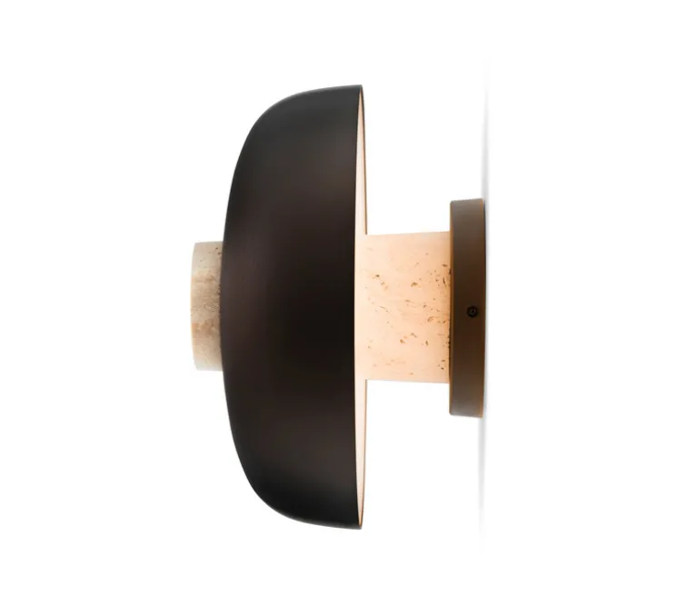 Son support conique en travertin non traité met en valeur les irrégularités naturelles de la pierre, tandis que son abat-jour incurvé en aluminium bronzé anodisé offre un contraste raffiné. L’éclairage doux et tamisé se prête parfaitement à une installation dans un salon, un couloir ou une chambre, seul ou en composition murale. Grâce à son design intemporel, elle s’intègre aussi bien dans un intérieur moderne que dans une décoration plus classique.