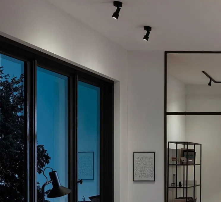Le dessin de Sara On Base 1.1 est efficace : une base circulaire, de laquelle sort un bras sur lequel est fixé un spot. Le faisceau lumineux peut être dirigé verticalement selon un angle de 90° et horizontalement à 360°. Cette applique aux faux airs de longue-vue, qu’elle soit fixée au plafond ou au mur, porte l’attention sur ce qui compte et s’adapte à toutes pièces de la sphère privée ou professionnelle.