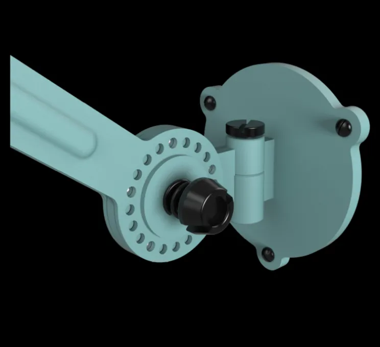 L’élément clé de cette série industrielle est la construction du joint qui peut être ajustée à l’aide d’un outil, de couleur laiton, en forme d’écrou à ailettes. Cet écrou à ailettes est intégré dans le design de la lampe en tant qu’élément visuel distinctif.
