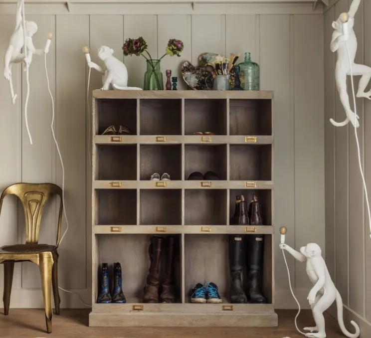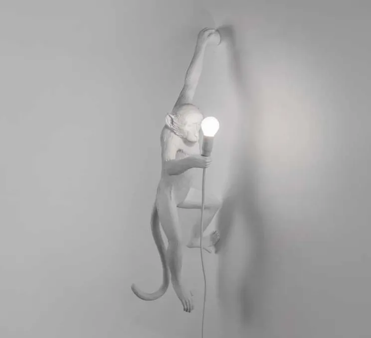 La collection de luminaires Monkey habille et nous emporte sous les tropiques avec beaucoup d’humour ! Cette grande applique blanche en résine n’est autre qu’un singe tout blanc suspendu au mur, qui tient dans sa main une torche. Cet éclairage totalement décalé donnera une atmosphère insolite, et du caractère digne d’un cabinet de curiosité fantastique. Ce design décalé appartient au talentueux Marcantonio Raimondi Malerba. Cette très belle applique par ses dimensions généreuses, H76cm habillera vos murs comme aucun autre éclairage.