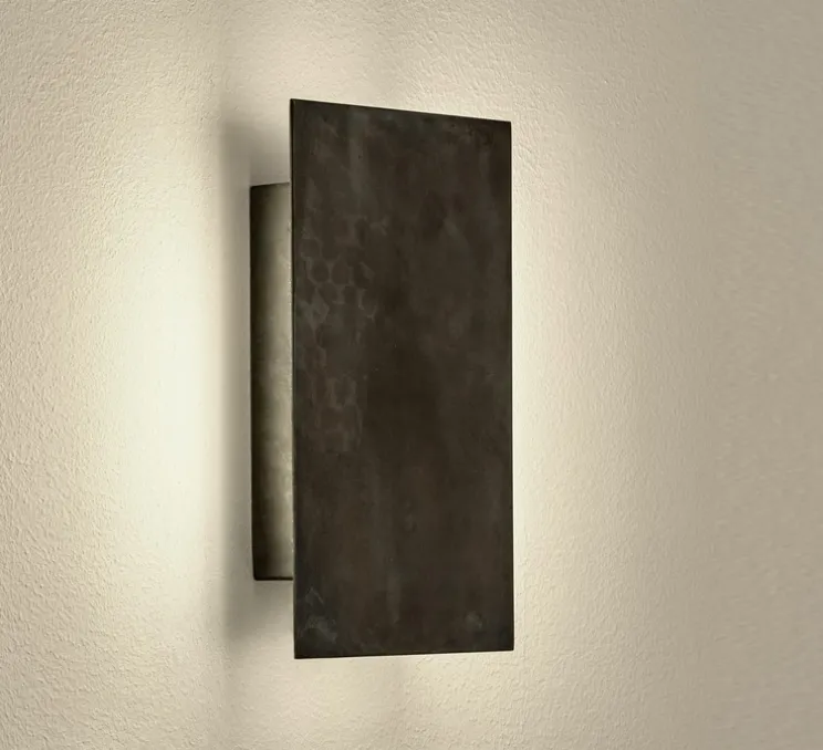 Ainsi, la forme suit la fonction. Dans cette version applique murale, ce luminaire est composé d’une base surmonté d’une plaque rectangulaire autour de laquelle est diffusée une lumière indirecte. Cette disposition permet de révéler tous les reflets bleutés de l’acier et de former un halo autour de l’applique.