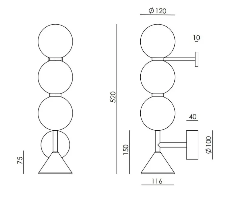 Cette applique mesure 52 cm de hauteur et dispose de 3 globes opalin en verre faisant 12 cm de diamètre. Sa source lumineuse est incluse et offre une puissance lumineuse totale de 900 lumens en 2700 kelvins, pour une lumière chaude et agréable.