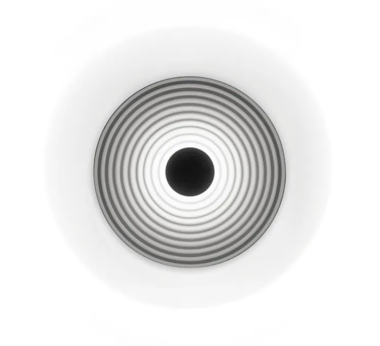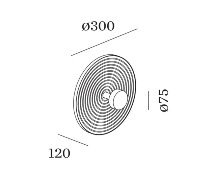 Wever&Ducré poursuit sa quête de rondeur en proposant un trio d’appliques à l’inspiration japonisante. L’applique Tapis 1.0 est composée d’un disque en plâtre strié, surmonté d’un cercle noir de diamètre plus petit, derrière lequel se dissimule la source lumineuse. Les stries sur la surface du disque permettent de donner du relief au flux lumineux. La diffusion de la lumière forme des halos consécutifs qui font penser à un Gong.