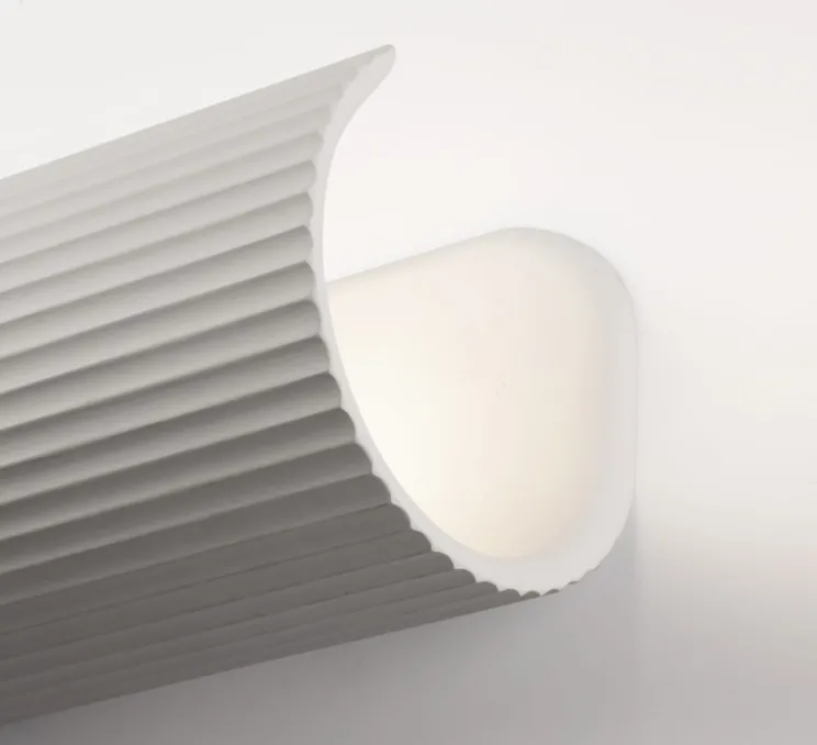 Avec son diamètre de 11,2 cm et sa hauteur de 32 cm, TRAMA 2L joue avec la lumière et les textures pour créer un effet de profondeur unique. Ses cannelures ajoutent du mouvement et permettent de structurer l’espace tout en apportant une touche sophistiquée. Son installation en position horizontale ou verticale offre de nombreuses possibilités décoratives pour personnaliser un intérieur et rompre la monotonie des murs.