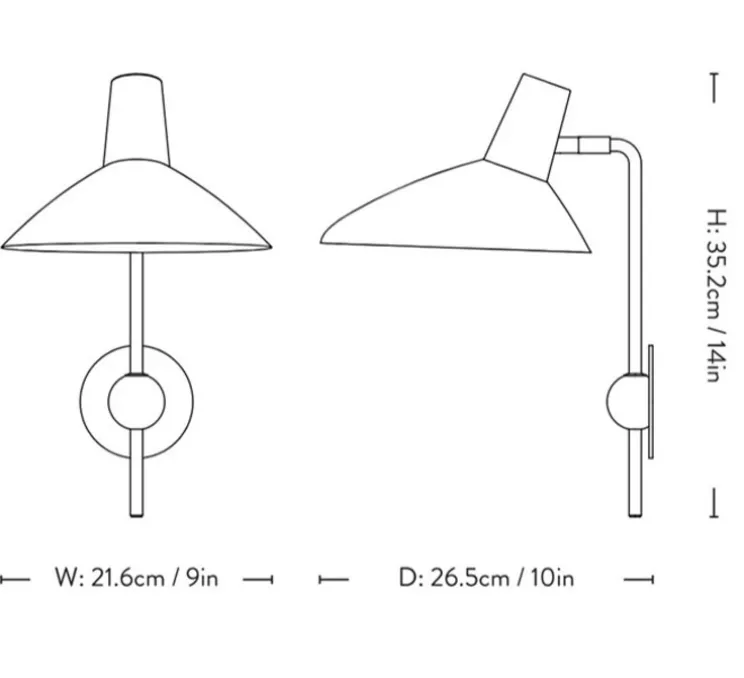 Techniquement, l’applique murale Tripod HM12 mesure 21,6 cm de largeur et 35,2 cm de hauteur, avec un câble noir de 2,2 mètres de longueur. Ce luminaire nécessite une source lumineuse non incluse et offre un éclairage direct. Bien que non dimmable, il assure une qualité d’éclairage optimale grâce à son design réfléchi. Le produit est conçu pour être monté en saillie, garantissant une installation facile et une diffusion de lumière précise.