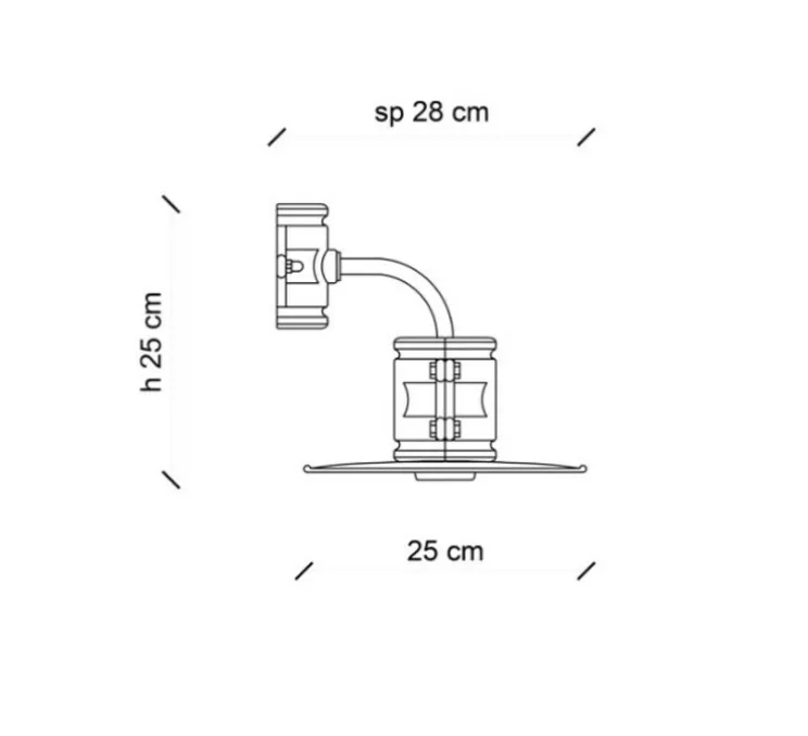 L’applique murale mesure 25cm de hauteur pour 25cm de longueur. La source lumineuse n’est pas fournie. Nous recommandons une ampoule E27, 77W max.