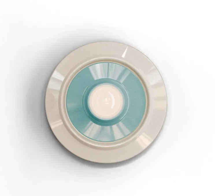 L’applique, de forme circulaire, se compose d’une superposition de deux disques en céramique. La source lumineuse se loge au centre de ces derniers, donnant l’impression d’être encerclée de halos colorés. Véritable mariage entre le décoratif et le fonctionnel, elle apporte une touche de dynamisme à votre intérieur grâce à une palette de couleurs éclatantes.