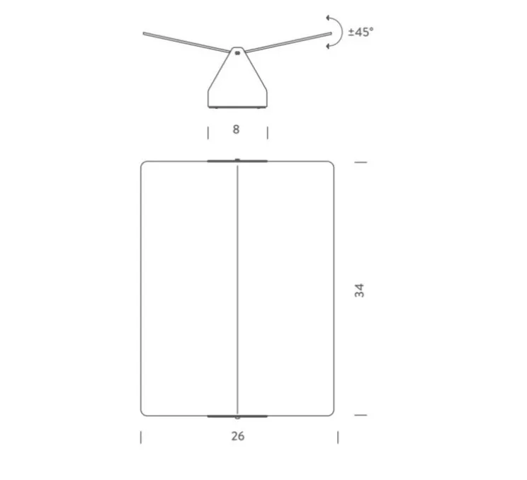 Le volet de ce modèle mesure 34cm de long sur 26cm de large. L’applique au mur est de 8cm de large. Trois coloris différents sont disponibles : aluminium, noir, inox.