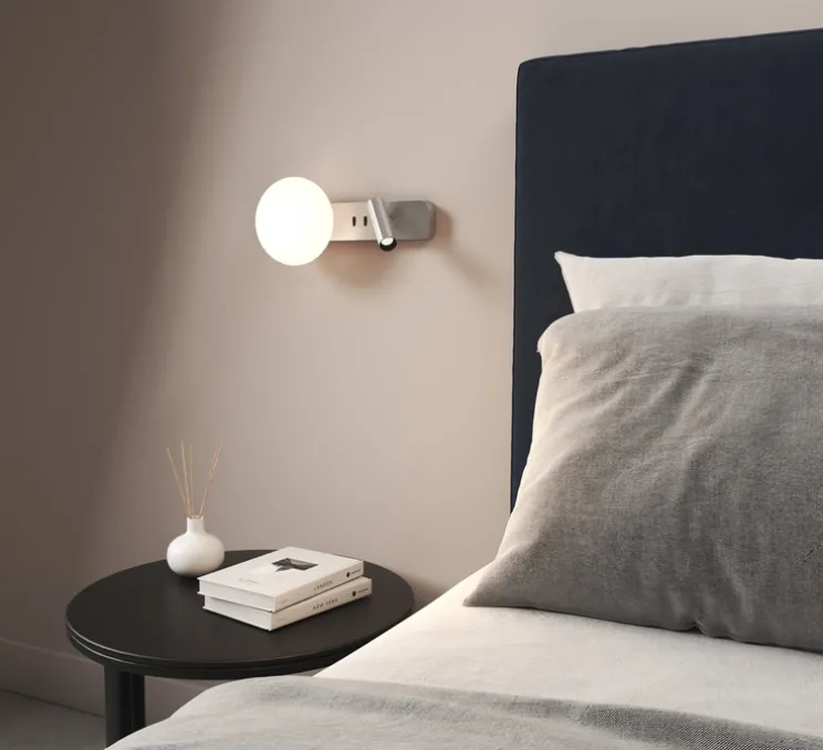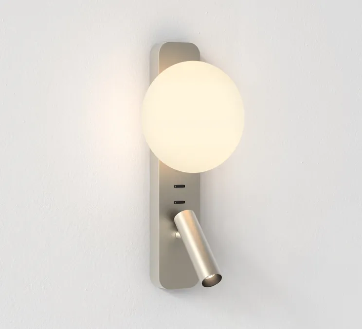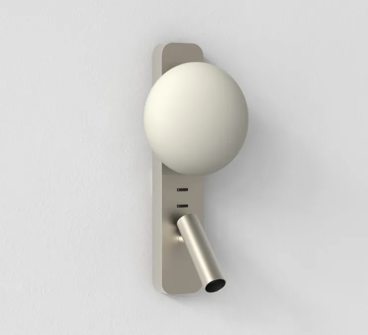 Découvrez l’élégante applique murale / liseuse Zeppo Reader, finition nickel mat, imaginée par le studio de la marque britannique Astro.