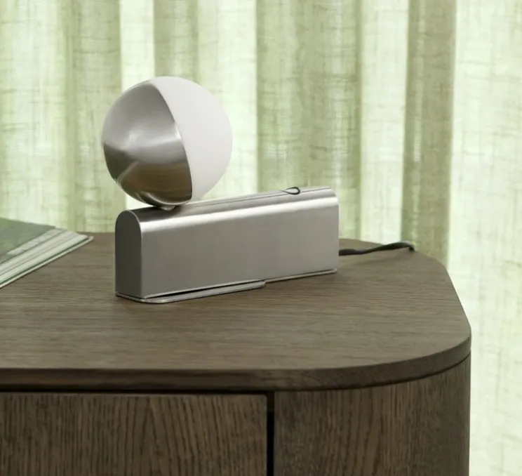 Balancer mini est composé d’un abat-jour en verre opalin soufflé à la bouche et d’un structure en acier.Ce luminaire possède également un gradeur à trois niveaux en laiton et un câble noir de 2 mètres.