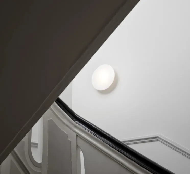 Avec son disque circulaire en verre opalin et son cadre en aluminium blanc, l’AJ Eklipta diffuse une lumière douce et homogène à 360°. Il s’installe aussi bien en applique qu’en plafonnier, s’adaptant parfaitement aux espaces intérieurs et extérieurs couverts. Son design épuré sublime un hall d’entrée, un couloir ou une montée d’escalier en apportant une lumière chaleureuse et enveloppante.