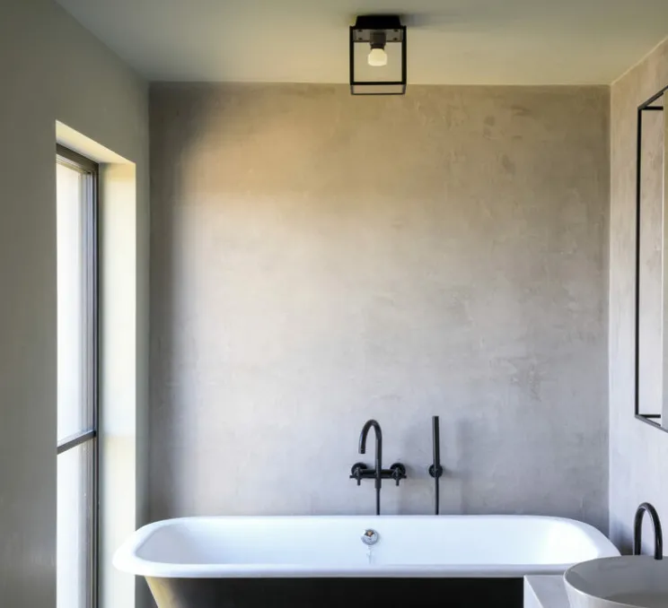 Ce luminaire est fabriqué avec une structure en métal et un abat-jour en verre noir mat, complété par un panneau arrière en métal moulé de teinte sable. Il est doté d’une douille en métal massif à molette croisée, fixée avec nos vis à tête de pièce de monnaie. Certifié IP44 et conforme aux normes ADA, il est adapté aux environnements humides, aux salles de bains et à une utilisation en extérieur. Disponible en acier, laiton et métal renforcé, la partie supérieure et inférieure de la cage est conçue en métal noir mat, présentant des perforations pour assurer un drainage efficace et ainsi empêcher toute accumulation d’eau ou d’humidité.