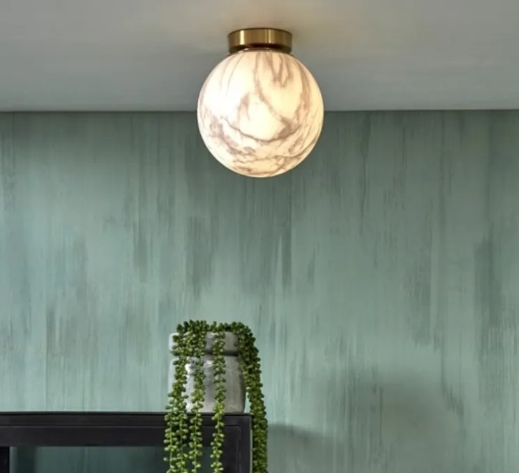 Cette jolie sphère en verre de 22cm de diamètre, à la finition en marbre blanc habille vos murs ou votre plafond de manière élégante.