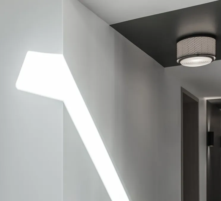 Il est composé d’une grille en métal perforé et d’une authentique lentille de Fresnel en verre, au sein desquels se diffuse la lumière. Il se décline en 3 tailles (small, medium et large) et en 3 finitions (noir, blanc et gris), et peux ainsi s’accrocher seul ou en répétition, à autant de compositions que souhaité.