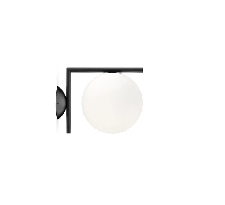 IC Lights C/W1 est une applique à lumière diffuse, composée d’un diffuseur sphérique en verre opalin blanc, fixé sur une barre en « L » en métal avec base se montant au mur ou au plafond. Réel jeu d’équilibre entre ses deux matériaux, IC Lights possède une harmonie d’une pureté graphique absolue, qui s’intègre aussi bien dans les intérieurs classiques que contemporains, que ce soit dans un salon, une chambre ou une entrée.