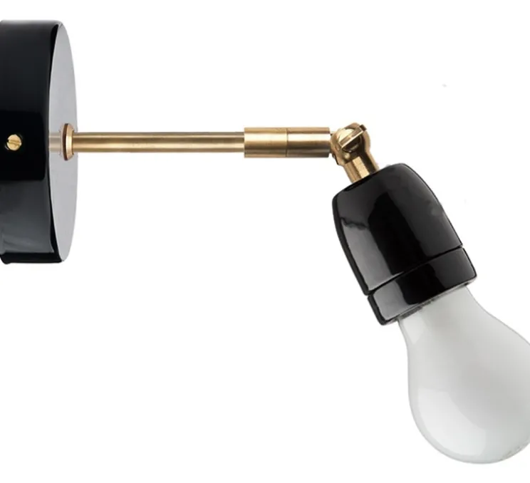 Son bras s’étend sur un total de 21,5cm et est positionnable à 90 degrés, sa douille est en porcelaine noire.