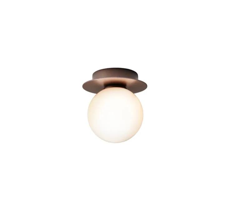 Ce modèle, taille small, couleur bronze au globe blanc opalin s’adapte à tous les styles et crée une atmosphère unique. Il s’intègre à des intérieurs privés comme à des espaces publics et trouve parfaitement sa place dans des petites pièces, dans un couloir, une entrée ou dans un espace avec un plafond bas.