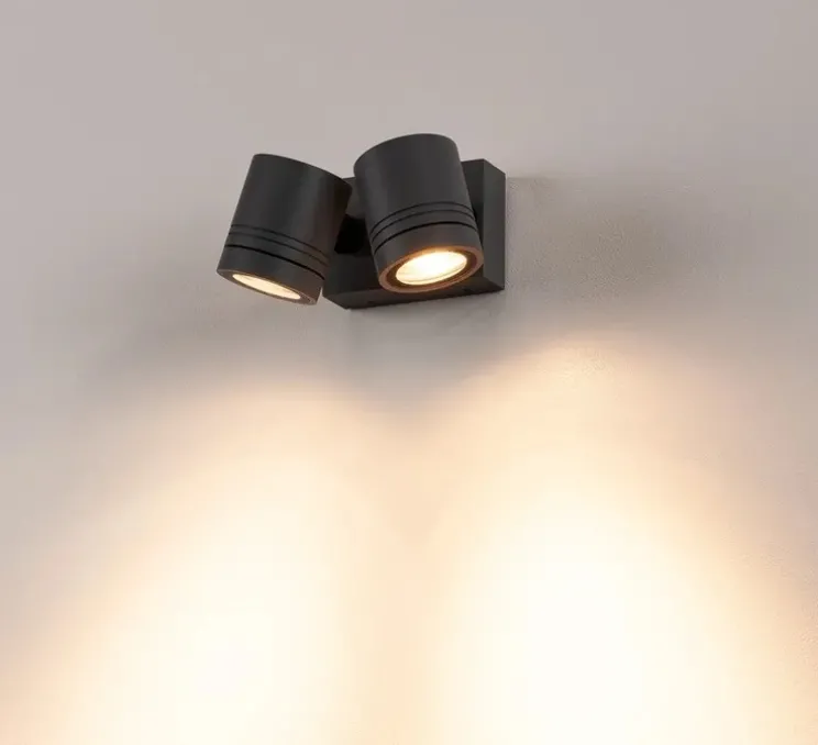 Adapté pour l’extérieur grâce à l’indice de protection IP55. Il convient parfaitement en terasse, jardin ou devanture de garage. Il est composée d’aluminium laqué et de verre qui recouvre la/les sources. Les têtes sont à rotation/inclinaison. Le raccordement électrique du luminaire, disponible en plusieurs coloris, s’effectue sur la tension secteur 230V.