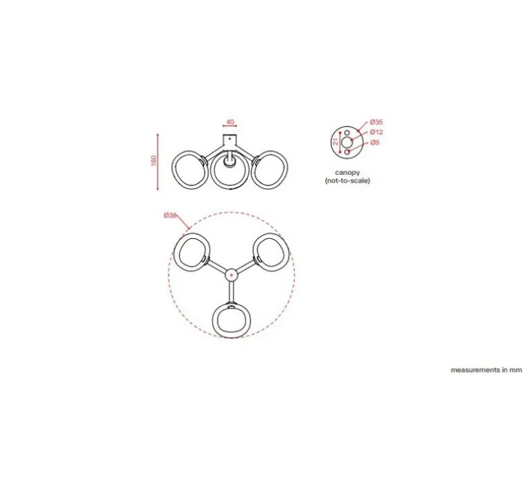 Cette applique se compose de 3 ampoules G9, elles ne sont pas fournies avec la suspension. Ces Dimensions sont de Ø 38 D. 14 cm.