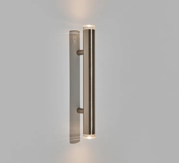 Fixée parallèlement au mur ou au plafond, cette applique/plafonnier cylindrique s’accompagne de deux disques en verre moulé qui diffusent la lumière aux extrémités. Sa forme graphique et sa finition brute en acier en font une pièce décorative architecturale, qui peut s’installer seule ou en composition linéaire pour souligner une circulation, une cimaise ou un pan de mur. Elle trouve également sa place dans les salles de bains ou extérieurs couverts grâce à son indice de protection IP44.