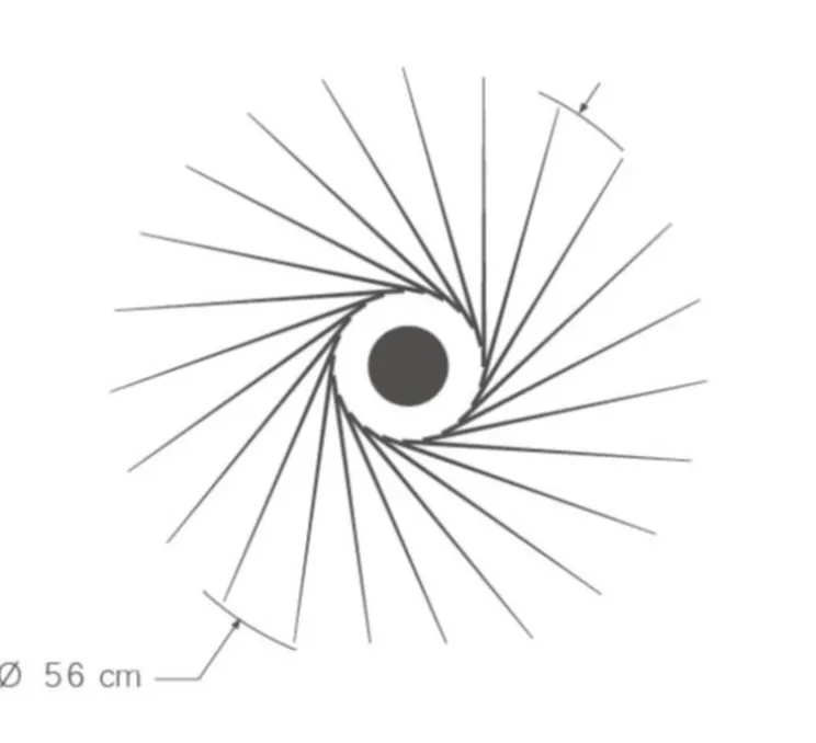 Avec son diamètre de 56 cm, Sanpedrö propose un volume subtil et graphique, dont les lignes épurées s’intègrent aisément dans un intérieur de style naturel ou provençal. Son bois de bouleau peint en noir laisse apparaître un fil continu, qui reflète la lumière de manière douce et changeante selon l’angle et l’heure de la journée.