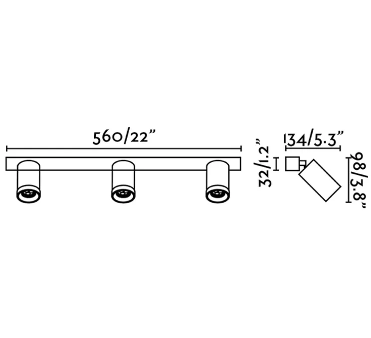 L’éclairage mesure 9,8 cm de hauteur max selon l’inclinaison des spots et 56 cm de longueur. Les trois ampoules LED GU10 d’une puissance maximale de 8W ne sont pas fournies mais sont recommandées pour un éclairage optimal. Un modèle au coloris noir est aussi disponible.