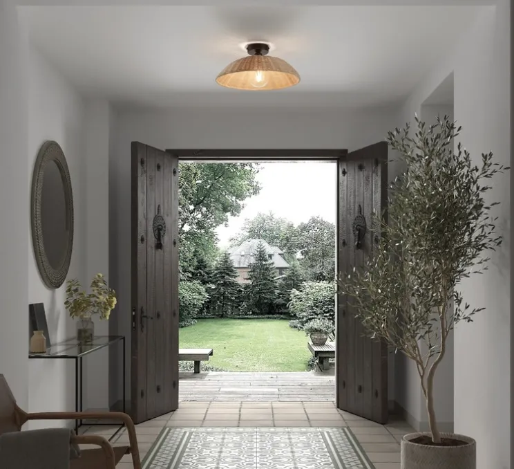 Parfait pour les espaces rustiques ou bohèmes, ce luminaire met en valeur la beauté du matériau naturel et diffuse une lumière directe et enveloppante. Son tressage délicat laisse filtrer un jeu subtil d’ombres et de lumières, créant une atmosphère apaisante. Il peut être installé aussi bien en applique murale qu’en plafonnier, selon les besoins et l’espace disponible.