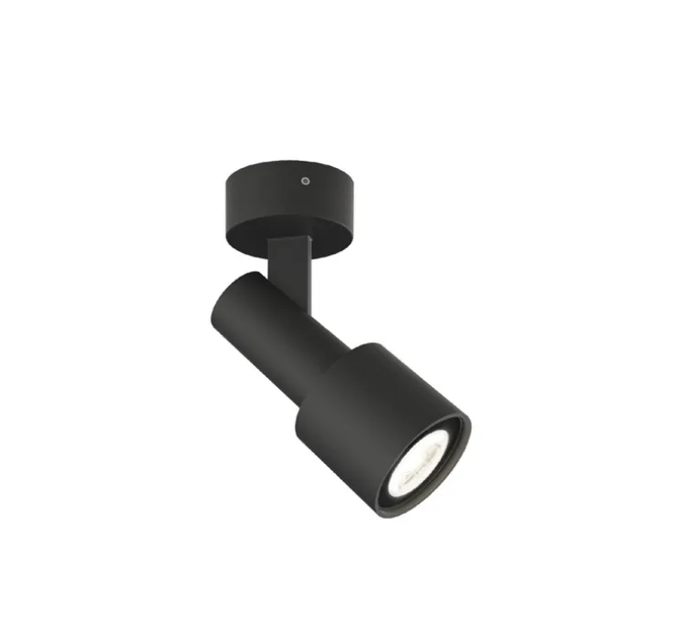 Le dessin de Sara On Base 1.0 est efficace : une base circulaire, de laquelle sort un bras sur lequel est fixé le spot. Le faisceau lumineux peut être dirigé verticalement selon un angle de 90° au niveau de l’attache entre le bras et le spot. Cette applique aux faux airs de longue-vue, qu’elle soit fixée au plafond ou au mur, porte l’attention sur ce qui compte et s’adapte à toutes pièces de la sphère privée ou professionnelle.