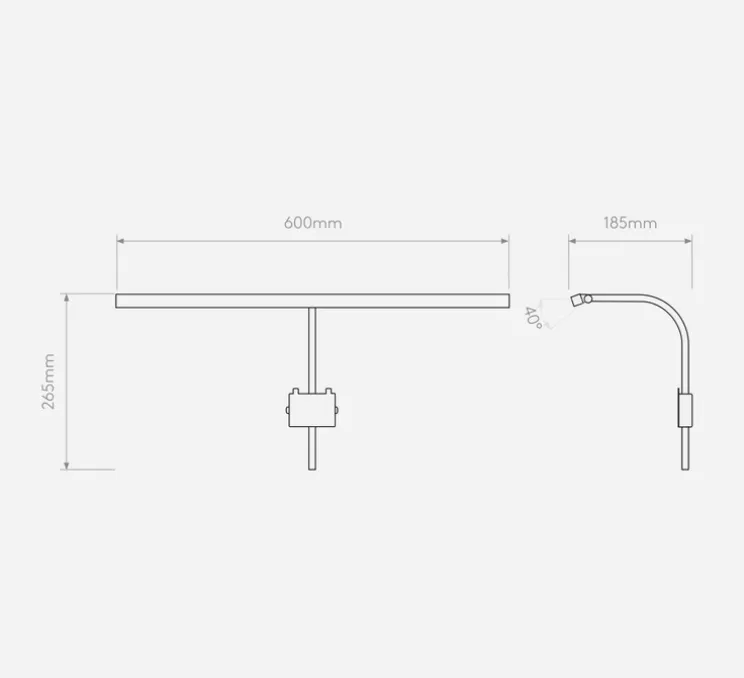 Le luminaire mesure 26,5cm de hauteur, 60cm de largeur et 18,3cm de profondeur. La bande LED est incluse avec une puissance maximale de 8W, une température de couleurs de 2700K et une intensité lumineuse de 214lm. Driver non requis et dimmable. Le câble électrique mesure 1m.