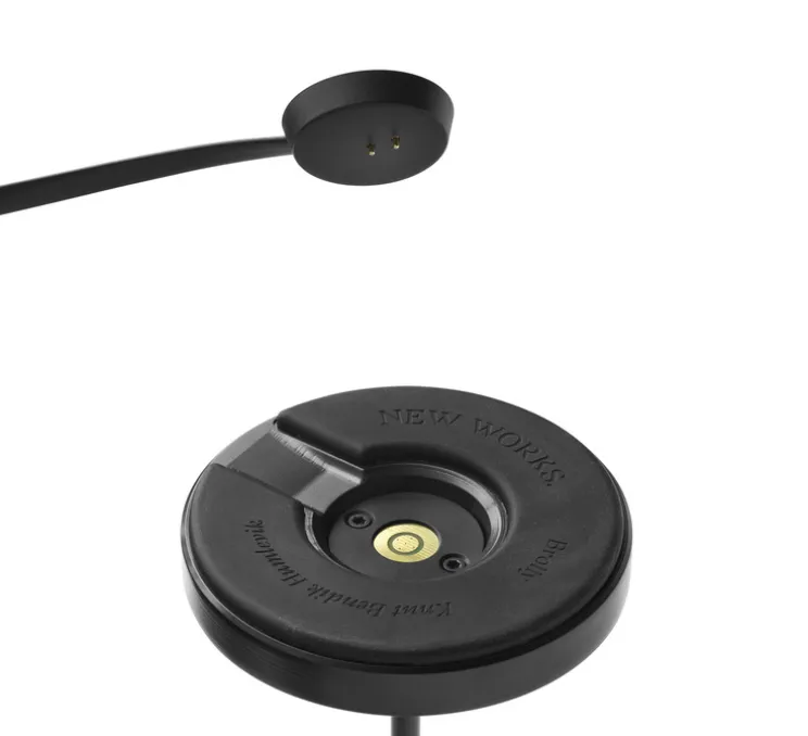 La lampe se recharge à l’aide d’un chargeur magnétique, qui se fixe de manière transparente sous la base de la lampe, ce qui permet d’utiliser la lampe tout en la chargeant. Le câble noir mesure 2m. Le temps de charge est de 5h.