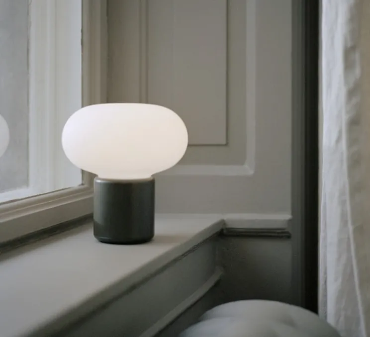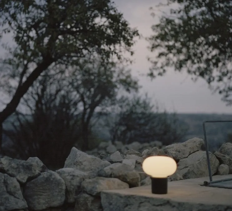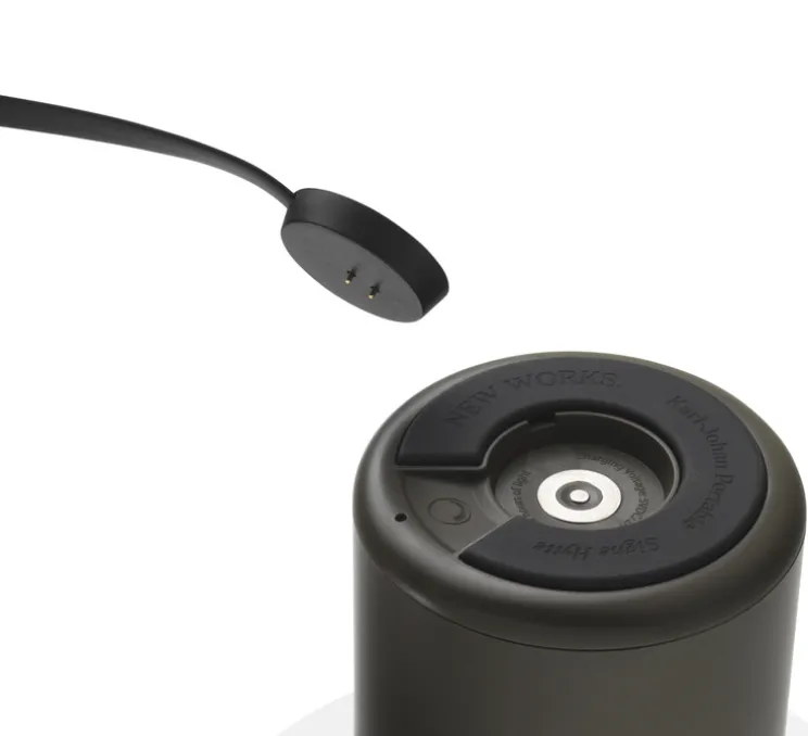 La luminosité peut être réglée sur trois niveaux par une légère pression sous la base de la lampe. La Karl-Johan Portable se recharge à l’aide d’un câble magnétique d’une longueur de 150 cm et peut éclairer jusqu’à 22 heures.